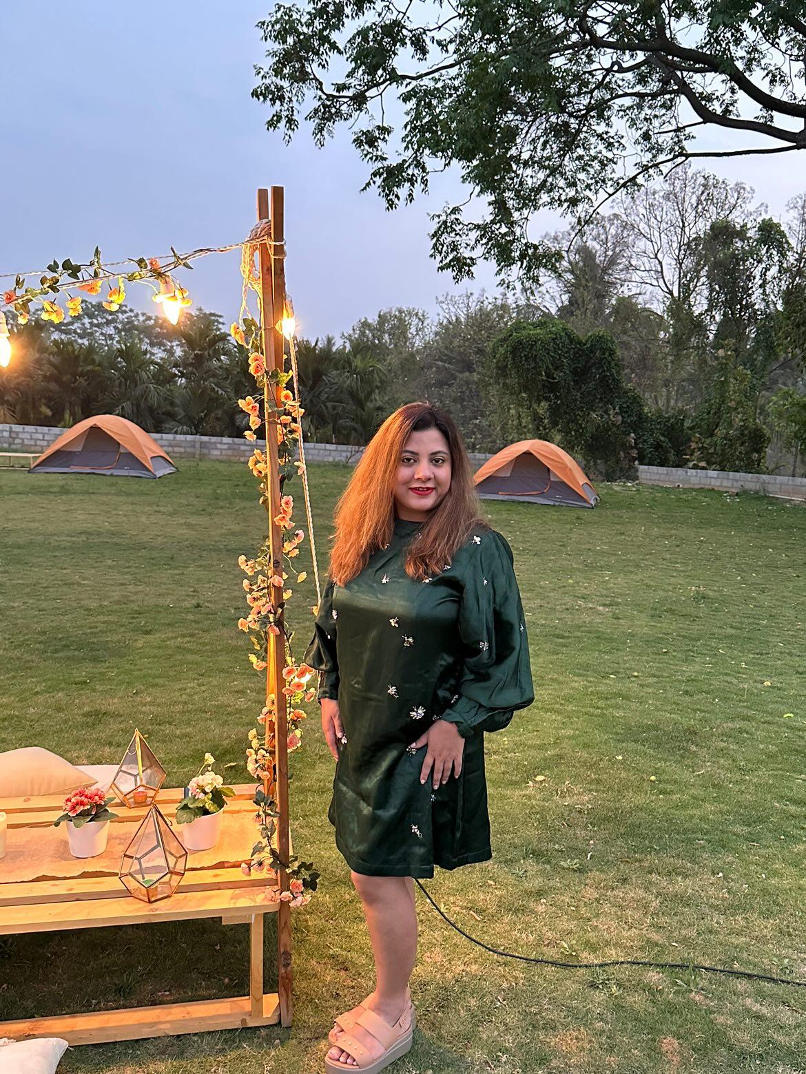 Step into effortless luxury with our Emerald Elegance Beaded Bug Dress, a statement piece designed to turn heads. Crafted in a rich, deep green satin fabric, this dress features exquisite hand-done bead embroidery in whimsical bug motifs that add a playful yet sophisticated charm.